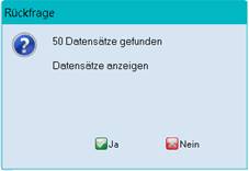 > will man nur die Anzahl (hier 50) sehen: mit „Nein“ beenden > will man die Datensätze als Liste sichtbar machen: mit „Ja“ bestätigen > die Liste aller Datensätze öffnet sich |