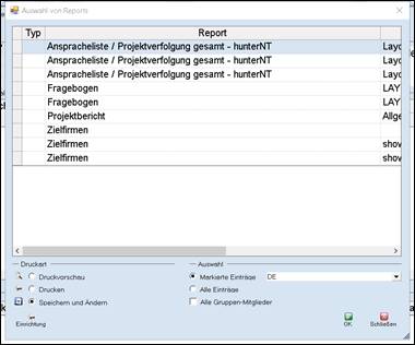 sind mehrere Zielfirmen eingetragen öffnet sich eine Liste der Firmen, von der heraus man die Firmenmasken öffnen kann |
