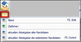 Der Button ist unterteilt, auch in der Farbschattierung erkennbar: > den oberen Teil direkt anklicken > zur Maske Firma des Klienten wechseln (das ist auch der erste Eintrag der Auswahlliste) oder > > es öffnet sich eine Auswahlliste