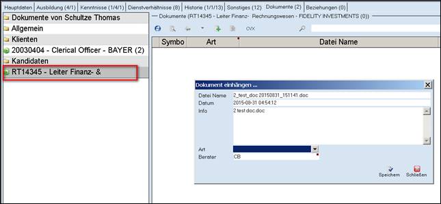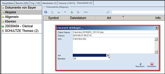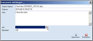 Eingabemaske XYZ – Dokumente – Dokumente einhängen