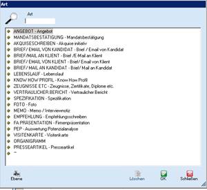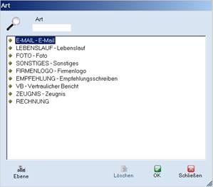 hier ist eine Liste (Art = Dokumententyp) hinterlegt,