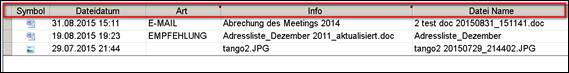bei abgelegten e-Mails ist erkennbar, ob eine Dokumentenanlage vorhanden ist.