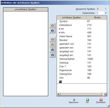 Aus den Einträgen in „Dokumente einhängen“ ergibt in der Standardeinstellung zunächst folgende Tabellenansicht