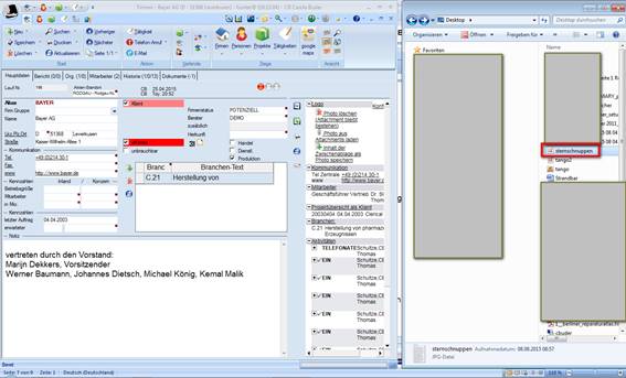 > die Datei/ die E-Mail irgendwo wahllos auf der Hauptmaske ablegen