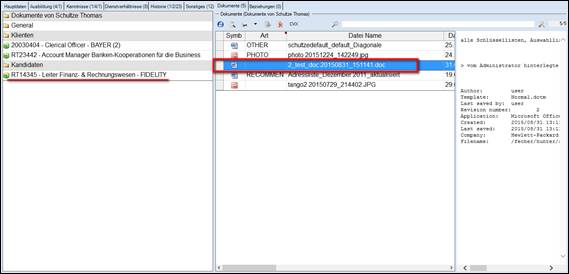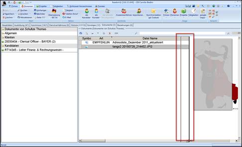 ein in der Dokumentenablage abgespeicherter CV kann mittels CVX (CV Extractor) eingelesen werden