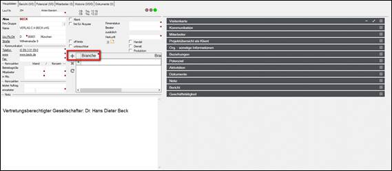 > die Firmenmaske erscheint zum weiter bearbeiten