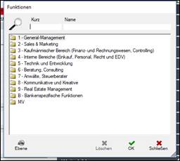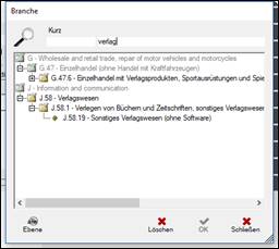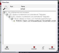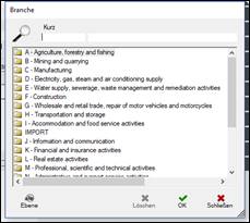 > es öffnet sich die Dialogbox mit den Hauptüberschriften der Branchencodes