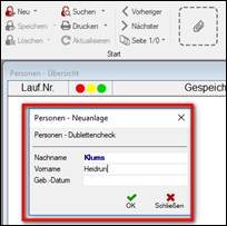 > es öffnet sich der Dublettencheck