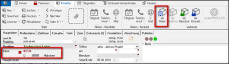 Projektmaske – TAB Hauptdaten