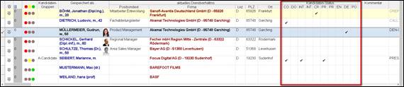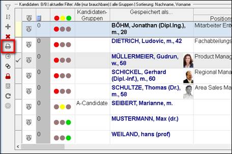 Werkzeugleiste Kandidatenübersicht
