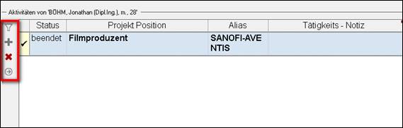 Projektmaske – TAB Hauptdaten - Aktivitäten