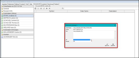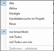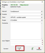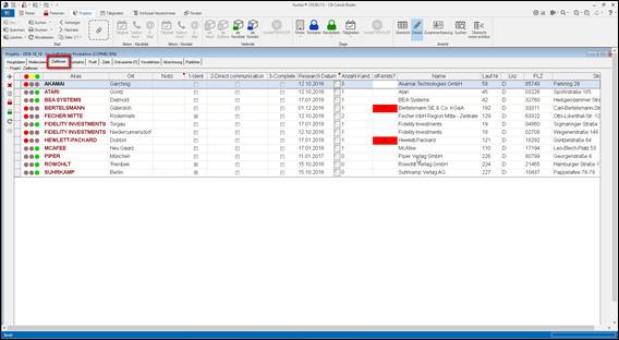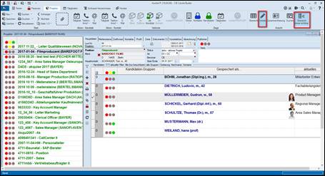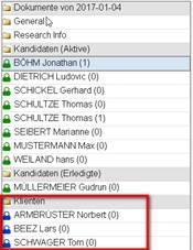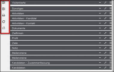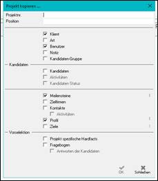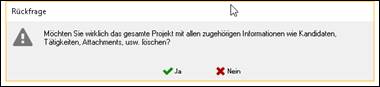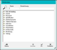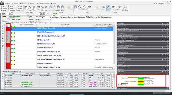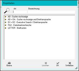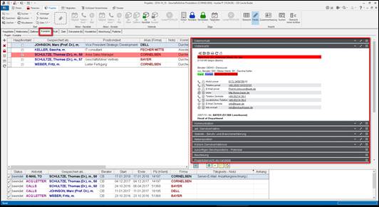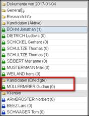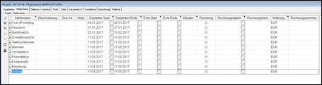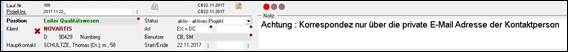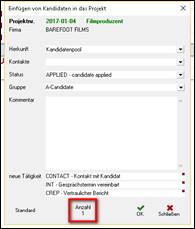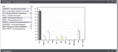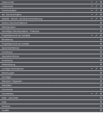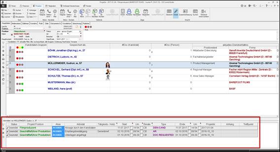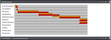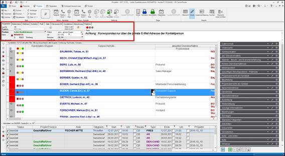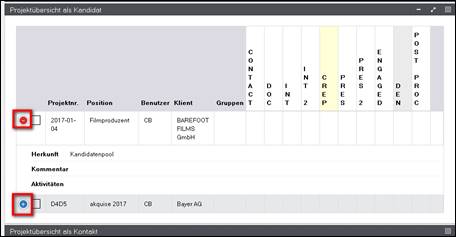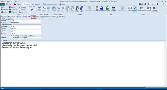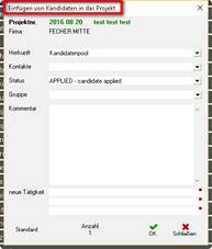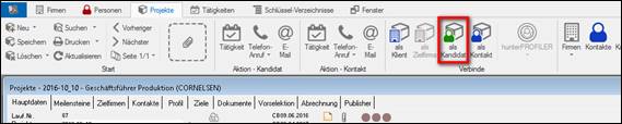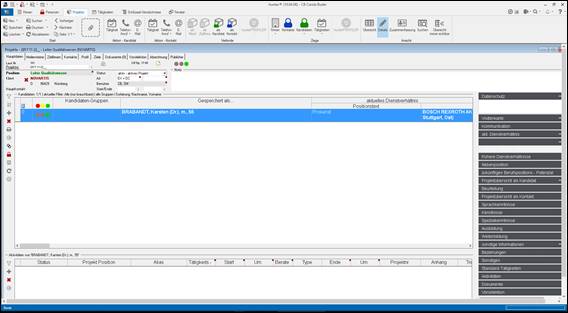 Hier wird das Projekt geführt, Projektschritte dokumentiert, Schriftverkehr mit Klienten und Kandidaten und Tätigkeiten/Aktivitäten ausgeführt.