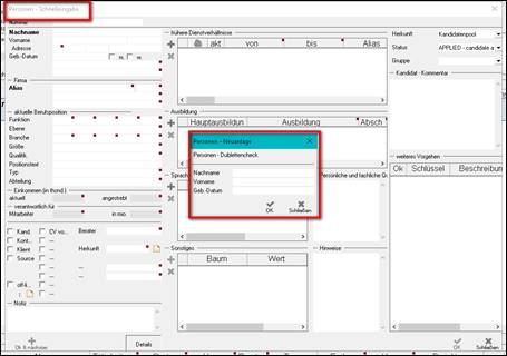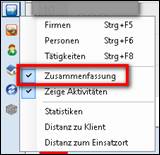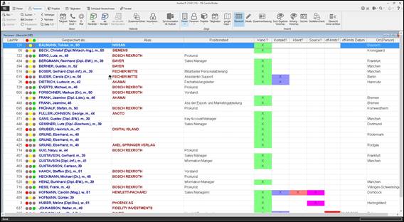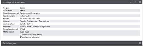 Hier finden sich alle Verknüpfungen zur Personenmaske und zur Firmenmaske wieder.
