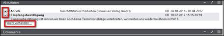 mit Klick auf „mehr vorhanden“ werden alle Dokumente sichtbar Hinweis: über die Konfiguration |