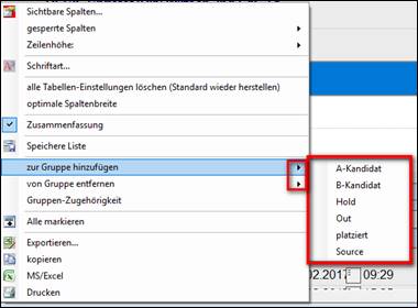 Beispiel >öffnet das Kontextmenü des jeweiligen Feldes (z.B. Schlüsselauswahltabelle, vergrößertes Notizfeld) |
