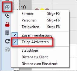 Tätigkeitsnotiz mit Klick auf bzw. Hinweis: über die Konfiguration >