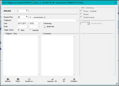 eine neue kandidaten-bezogene Tätigkeit anlegen |