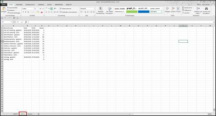 ein beschreibbares Excel Dokument mit Text / Einträge aller Registerkarten (z.B.