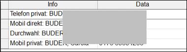 versteckte Bereiche wegen des Datenschutzes ohne inhaltliche