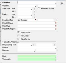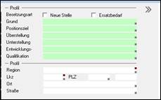 Datenfelder in den Eingabemasken und Suchmasken, die mit einem kleinen roten Quadrat in der rechten oberen Ecke gekennzeichnet sind