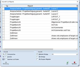 Ausdruck der Einträge von den Registerkarten, die in der Konfiguration