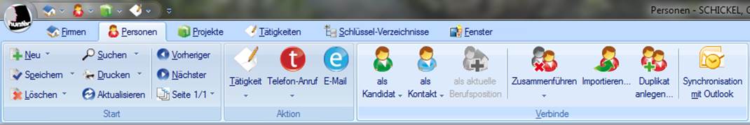 Verbindungen zwischen Datensätzen können Sie über die Schaltflächengruppe „Verbinde“ durchführen.
