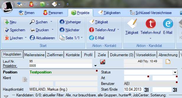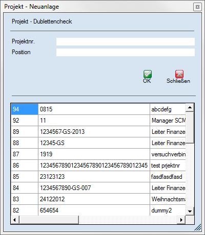 Im Projekt wird zunächst eine neue Projektnr., sowie die Position zwecks Dublettencheck abgefragt und anschließend wird der Kontakt übernommen.