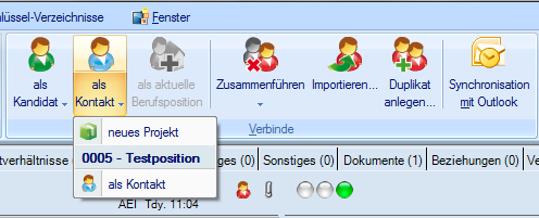 5.       Über die Schaltfläche als Kontakt wird die Person in das Projekt verbunden, welches im Hintergrund geöffnet ist.