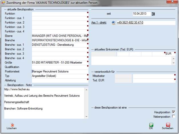 3.       Die zweite Möglichkeit ist, die Firma im Hintergrund geöffnet zu haben. Ist dies der Fall, dann wird die Schaltfläche als aktuelle Berufsposition in der Personenmaske aktiv.