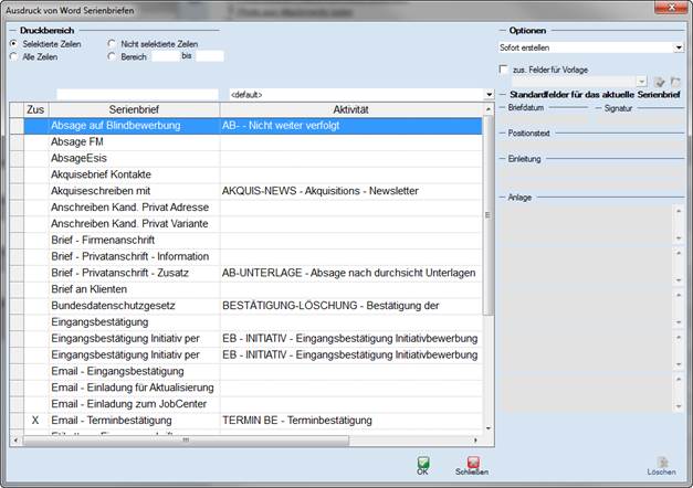 Durch Klick auf „Serienbriefe“ oder „Drucken“ erscheint der „Serienbrief Auswahldialog“.