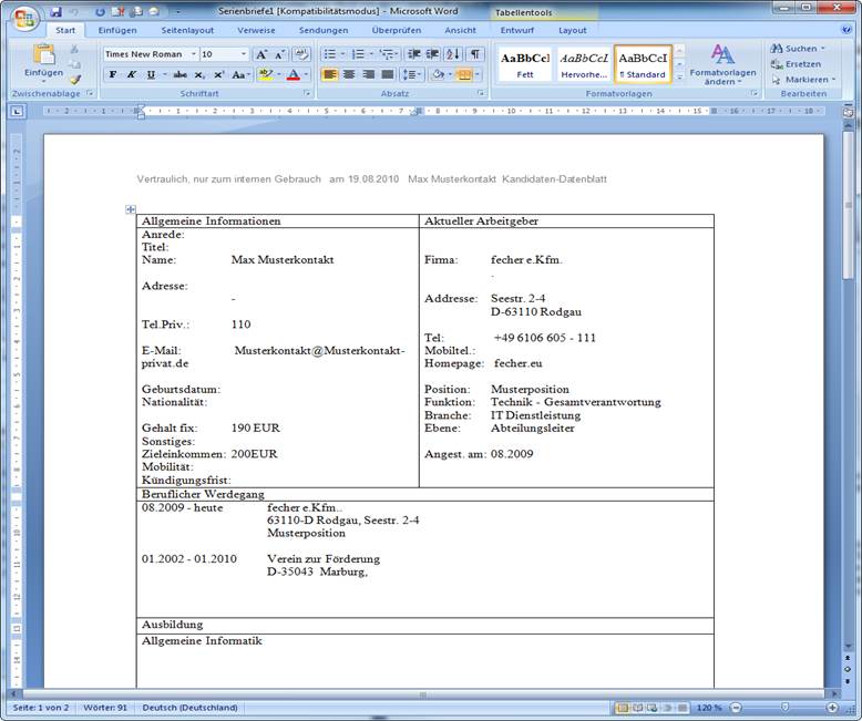 Einen Serienbrief erzeugen