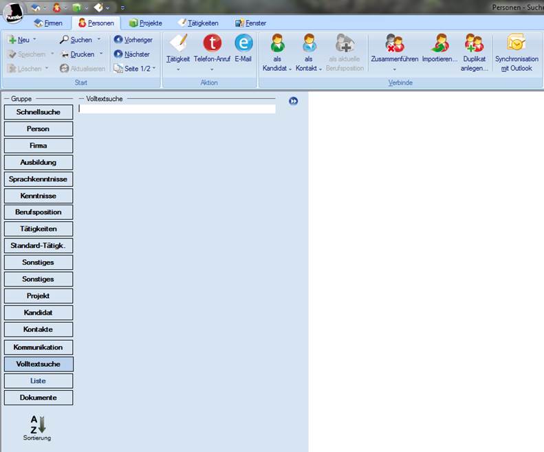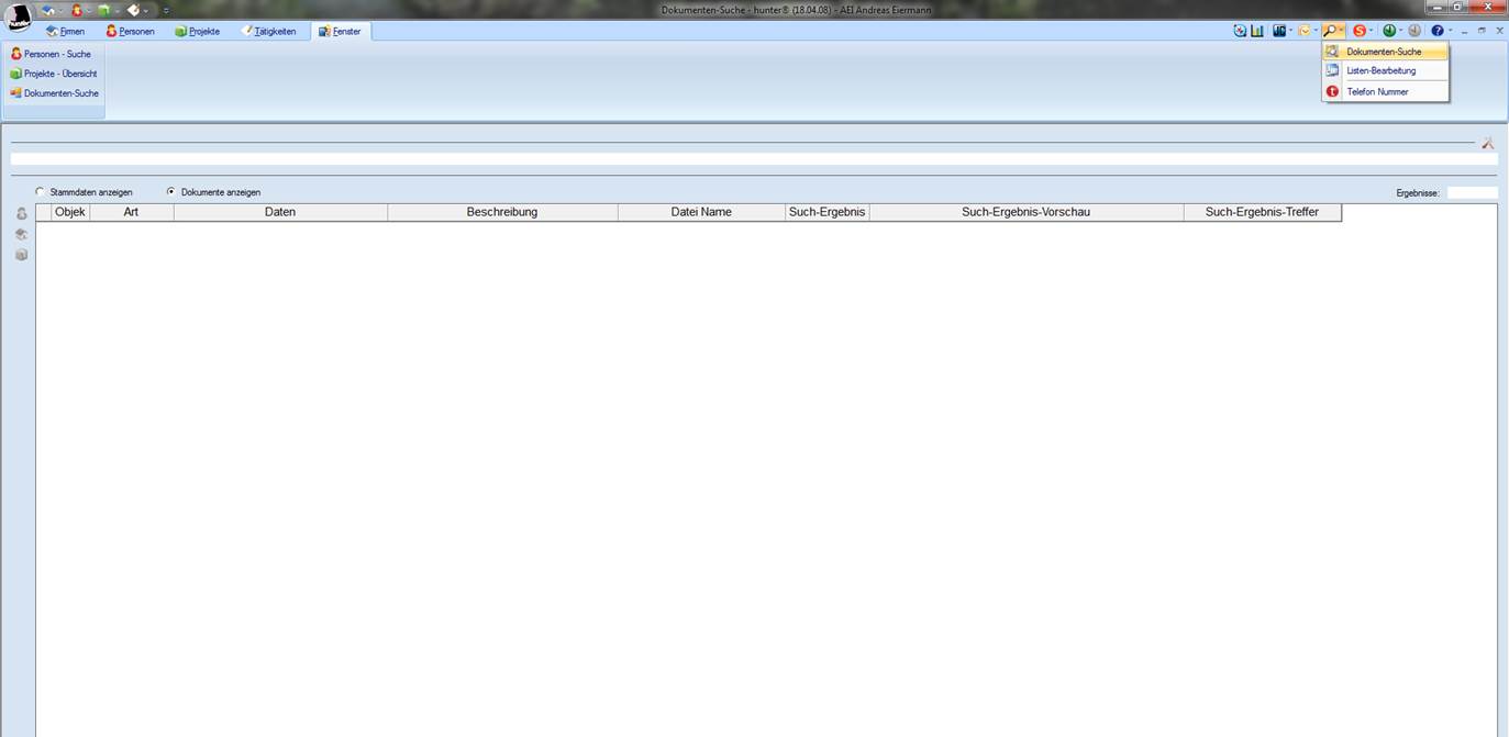 · Alles: Durchsucht die komplette Datenbank und die angehangenen Dokumente.