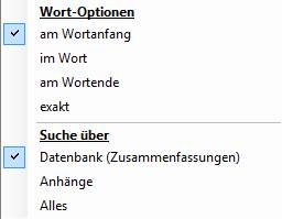 · Anhänge: Hier werden nur die angehangenen Dokumente durchsucht.