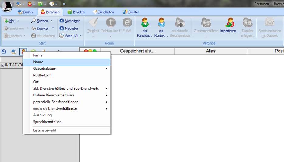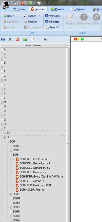 Dokumente aufgelistet und nicht die Personen/Firmen Datensätze. Öffnen können